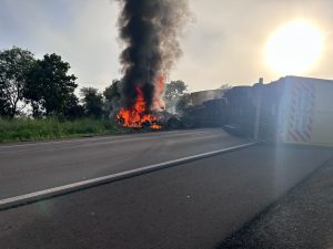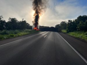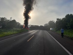 “Conseguimos apoiar os braços da vítima, que estava consciente e responsiva e ajudou muito nesse resgate. Conseguimos retirar o motorista e arrasta-lo para um local mais distante, por causa das chamas. Aguardamos socorro por cerca de meia hora. Uma médica que passava no local constatou que a vítima estava estável e diante disso a transportamos na viatura do DPI até Água Clara”, contou o delegado.