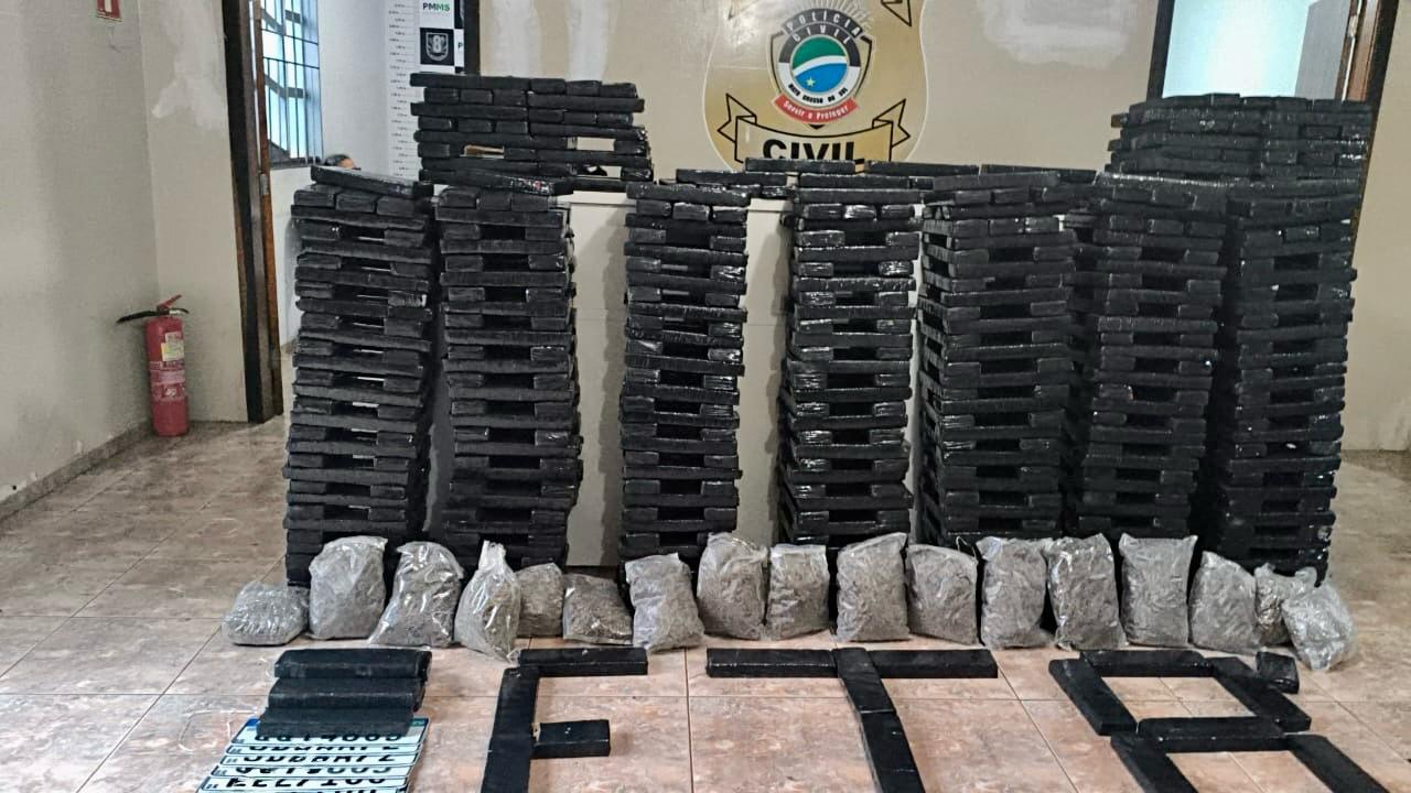 Durante patrulhamento, o veículo foi localizado e abordado nas proximidades de um posto de combustíveis, onde foram encontrados diversos tabletes da droga. No interior do automóvel também havia placas veiculares distintas, e a checagem apontou indícios de adulteração.
