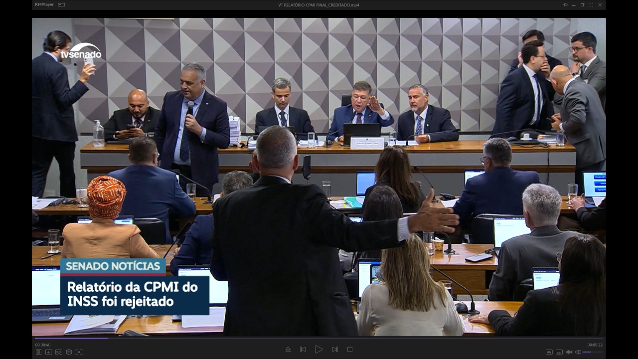 Foi rejeitado por 19 a 12 votos, o relatório final da CPMI do INSS, apresentado pelo deputado Alfredo Gaspar (PL-AL). O texto pede o indiciamento de mais de duzentas pessoas, entre elas ex-ministros da Previdência e parlamentares. O senador Weverton (PDT-MA), incluído no texto, divulgou nota em que aponta fragilidades na investigação e diz que não foi identificado ato indicando participação sua nas fraudes. O relatório de Gaspar incluiu também o filho do presidente da República, Fábio Luís Lula da Silva, o Lulinha.