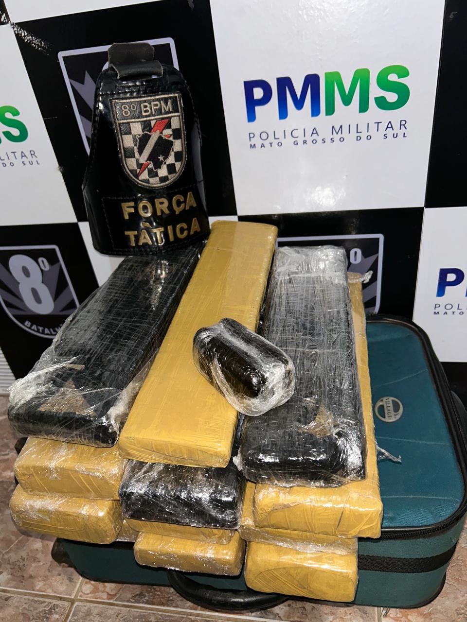 Uma ação conjunta da Polícia Militar resultou na apreensão de aproximadamente 14,1 kg de substância análoga à maconha e 202 gramas de haxixe em um ônibus interestadual abordado na segunda-feira (26) em Nova Andradina. A operação foi conduzida pelo 8º Batalhão de Polícia Militar, com apoio da equipe de Força Tática, e surgiu após informações obtidas pelo Canil do 3º BPM durante fiscalização em ônibus vindos de regiões fronteiriças no Terminal Rodoviário de Dourados.