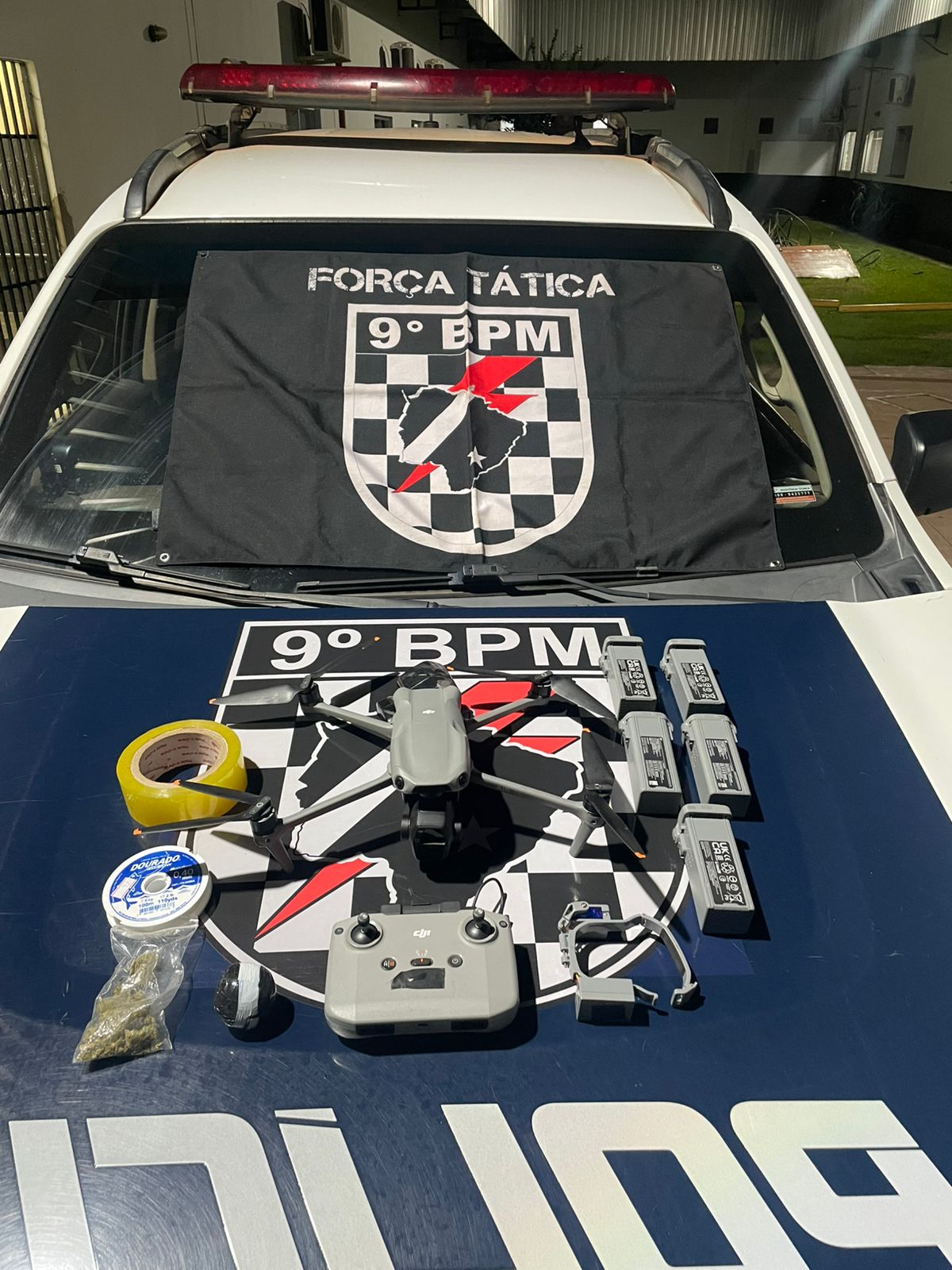 Dois homens, de 22 e 35 anos, foram presos na madrugada desta quinta-feira (2) após serem flagrados utilizando um drone para arremessar drogas no Presídio da Máxima, no Jardim Noroeste, em Campo Grande. A ação foi realizada por equipe da Força Tática do 9º BPM após denúncia sobre a prática criminosa. Durante diligências, os policiais localizaram a dupla em uma área de mata, sendo que um operava o controle do drone enquanto o outro carregava uma mochila com os materiais usados na ação.