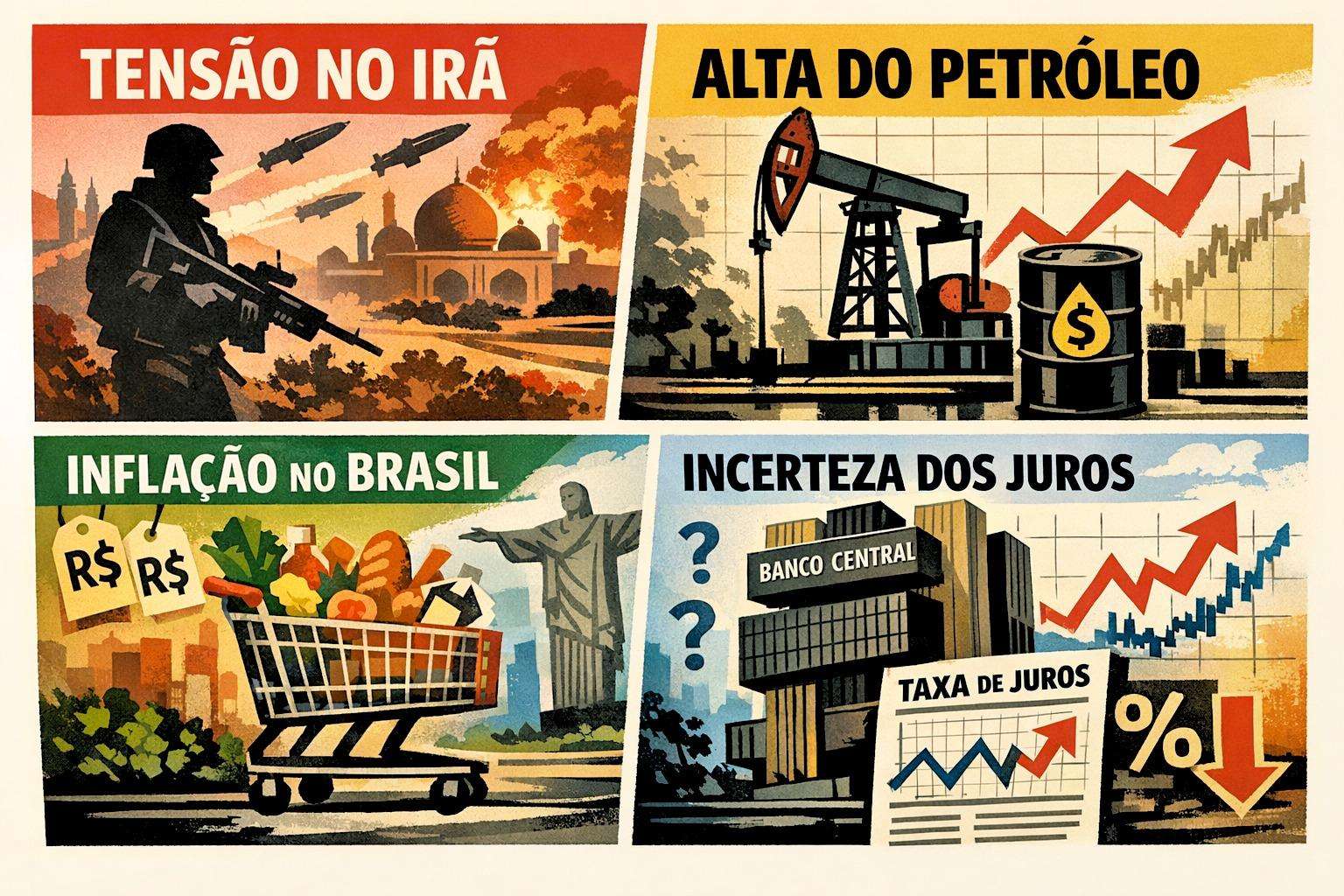 O conflito no Oriente Médio e a inflação acima do esperado ameaçam o plano do Banco Central de reduzir a taxa Selic em março. Com o petróleo em alta e o dólar pressionado, o Copom enfrenta um cenário de incerteza que pode manter os juros altos para segurar os preços no país.