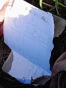 Próximo à vítima, foi localizado um bilhete com a mensagem “Proibido roubar. JDF, vamos atrás de mais”, o que levanta a suspeita de execução ligada a grupos criminosos que atuam na região. A vítima também possuía tatuagens em uma das pernas, um pano amarrado no pescoço e ferimentos provocados por disparos de arma de fogo na cabeça. A forma como o corpo foi deixado indica que o crime pode ter sido cometido com o objetivo de intimidar ou enviar recados a terceiros.