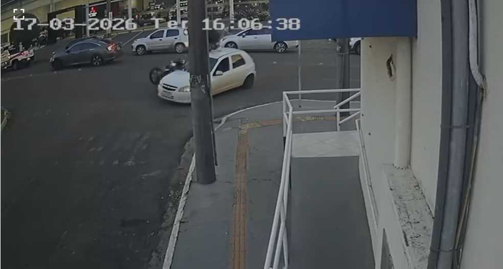 Um motoentregador ficou gravemente ferido após colidir com um GM Celta na tarde desta terça-feira (17), no cruzamento da Rua Joaquim Murtinho com a Rua Geraldo Vasques, no Jardim Bela Vista. Segundo testemunhas e imagens de câmeras de segurança, o motorista do carro realizou uma conversão repentina à esquerda, não dando tempo para que o motociclista evitasse o impacto.