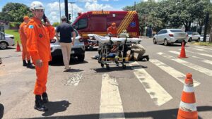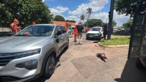 Um acidente na Avenida Duque de Caxias, nas proximidades da Praça das Araras, mobilizou o Corpo de Bombeiros e a Polícia de Trânsito no início da tarde desta sexta-feira (27) em Campo Grande. Um Renault Kwid, ao tentar conversão à esquerda para a Rua Silveira Martins, colidiu lateralmente com um Volkswagen Saveiro que trafegava na faixa correta. O impacto causou apenas danos materiais leves, mas a condutora do Kwid entrou em crise de pânico e se recusou a sair pelas portas do veículo.