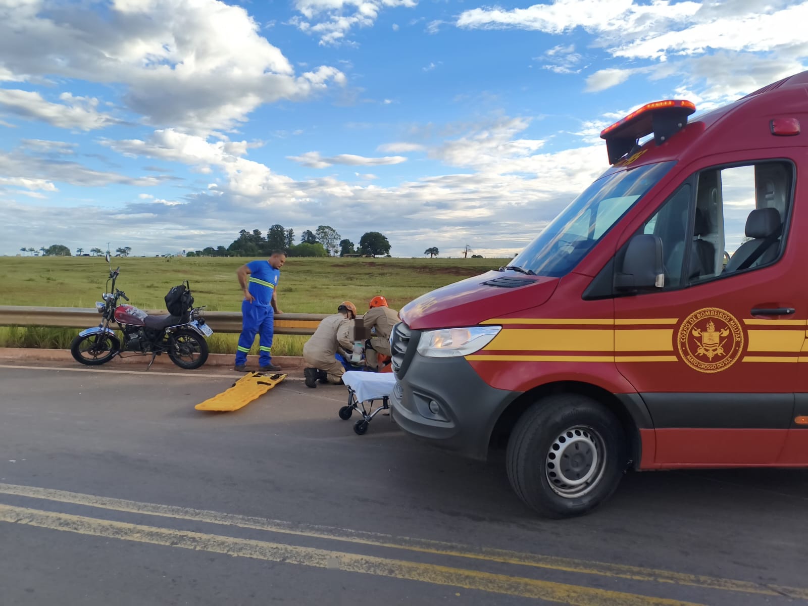 Piloto de Moto ficou ferido após sofrer uma queda por volta das 6h48 no prolongamento da Avenida Eurico Soares, na rotatória da MS-473, sentido ao IFMS, em Nova Andradina. Equipes de resgate foram acionadas e prestaram atendimento no local, onde encontraram o condutor com escoriações, um corte contuso no queixo e suspeita de fratura no tornozelo esquerdo. Após os primeiros socorros, a vítima foi devidamente imobilizada pela equipe. Em seguida, foi encaminhada ao Hospital Regional de Nova Andradina para avaliação médica.