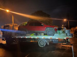 O material e o veículo recuperado foram encaminhados à 1ª Delegacia de Polícia Civil, enquanto nenhum suspeito foi localizado. A investigação agora segue para identificar os responsáveis e a origem da droga.
