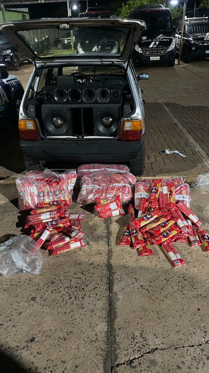 Na noite desta segunda-feira (26), dois jovens foram flagrados transportando uma carga de 121 Kg de macarrão sem procedência comprovada no bairro Jardim Anache, em Campo Grande. A apreensão foi realizada pela equipe do 9º Batalhão da Polícia Militar, que interceptou o veículo no cruzamento das ruas José Anache e Antônio Rahe.