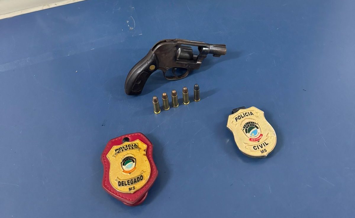 A equipe da Delegacia de Miranda deslocou até a cidade de Bonito para realizar recâmbio do preso, ocasião em que, após entrevista com o custodiado, obteve informação do local onde a arma de fogo utilizada para executar o crime estaria escondida. Na sequência, equipes das duas Delegacias diligenciaram até o local apontado, onde encontraram o revólver calibre .38, com cinco munições intactas, enterrado nos fundos de uma propriedade.