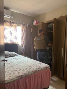 A PMMS, por meio da Delegacia de Atendimento à Mulher (DAM) de Ponta Porã e com apoio da 1ª Delegacia, cumpriu nesta segunda-feira (7) mandado de busca e apreensão expedido pela 3ª Vara da Violência Doméstica de Campo Grande durante investigação de ameaças contra uma mulher. Durante as diligências no endereço do suspeito, os agentes constataram a existência de um mandado de prisão em aberto contra o indivíduo, expedido pelo Tribunal de Justiça de São Paulo, decorrente de condenação definitiva por tráfico de drogas.