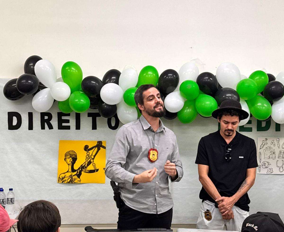 A palestra foi ministrada pelo Delegado de Polícia Avelino Rafael Mantovani, contando com a participação do Escrivão de Polícia João Vitor e do Investigador de Polícia Adriano Melquiades. Durante o encontro, foram abordados temas relacionados à carreira policial, às atribuições da Polícia Civil e à sua importância no contexto da segurança pública e da investigação criminal.