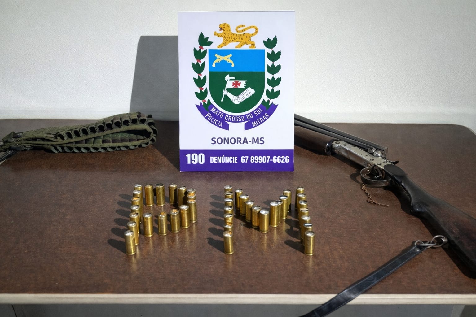 Diante da situação, a espingarda e as munições foram apreendidas e encaminhadas à Delegacia de Polícia Civil de Sonora para as providências cabíveis.