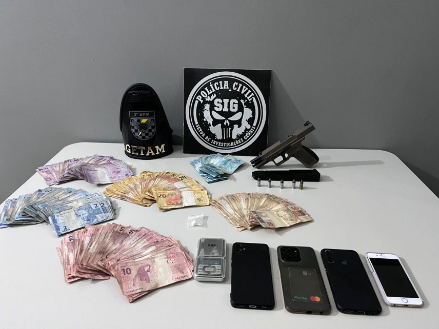A ação contou com a participação de 42 policiais, sendo 18 policiais militares com equipes do GETAM, CANIL e Força Tática, 24 policiais civis que contou com efetivo da DEPAC, DAM, 1ª DP, 2º DP, 3ª DP e SIG, resultando na apreensão de uma arma de fogo do tipo pistola, calibre 9mm, diversos petrechos utilizados para o preparo de porções de entorpecentes destinadas a venda para usuários, aproximadamente R$ 10.000,00 em dinheiro, valor proveniente do tráfico de drogas e a prisão em flagrante de um indivíduo.