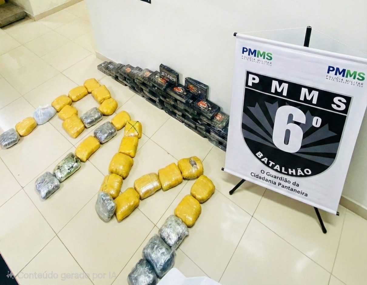 Corumbá (MS)- A Polícia Militar de Mato Grosso do Sul apreendeu, na tarde de segunda-feira (12), uma grande quantidade de entorpecentes durante atendimento a uma denúncia no município de Corumbá.