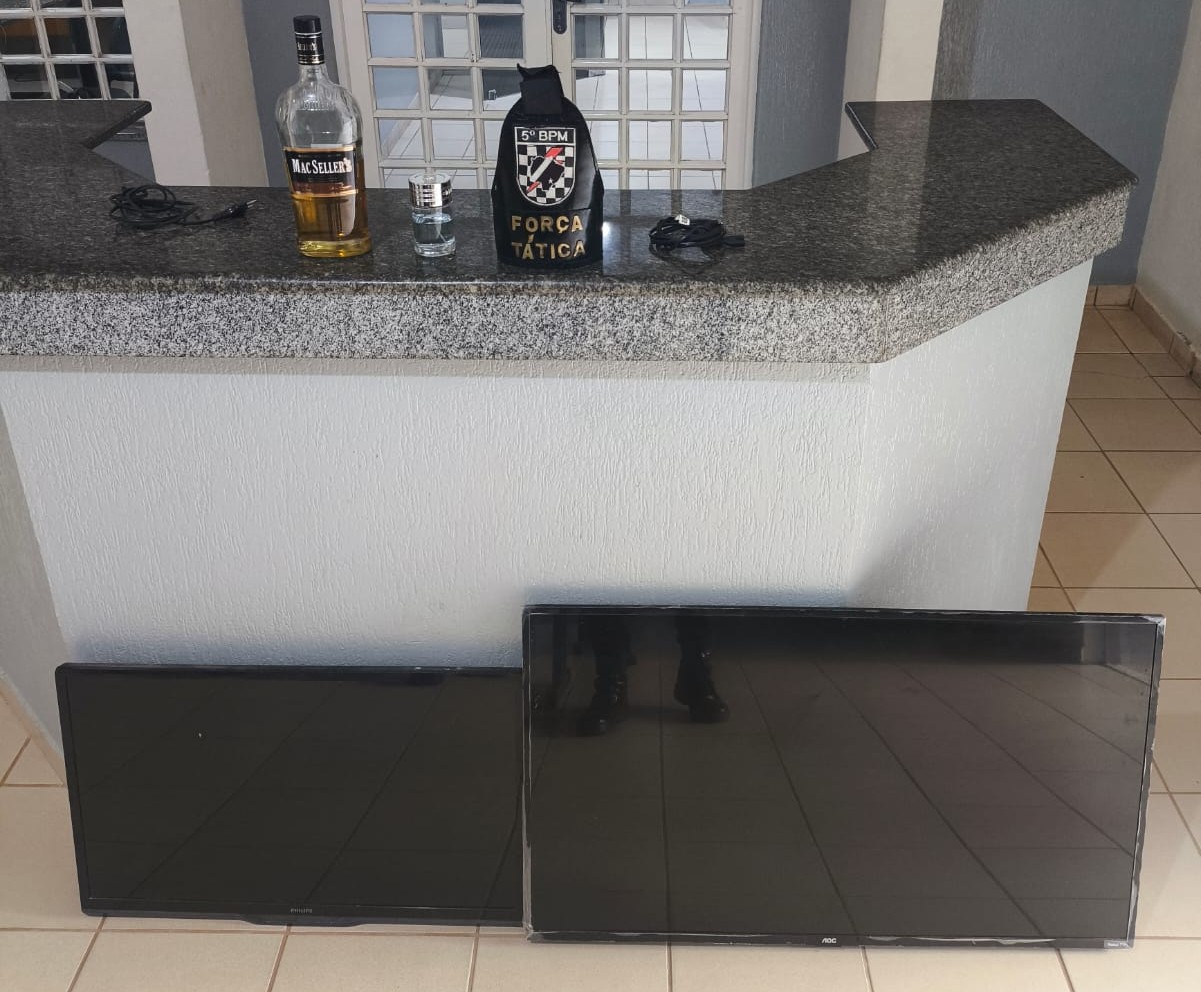 Foram recuperadas duas televisões, sendo uma de aproximadamente 30 polegadas e outra de 50 polegadas, além de um perfume, carne e uma garrafa de whisky. Os objetos estavam separados e cobertos com galhos, indicando tentativa de ocultação.