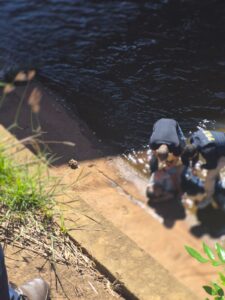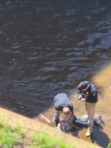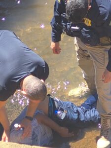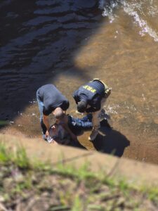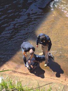 Ao perceber que ele ainda apresentava sinais de vida, o militar agiu rapidamente para evitar o afogamento. Com apoio de um agente da PRF que passava pelo local, ele conseguiu erguer a cabeça da vítima e mantê-la estabilizada até a chegada do Corpo de Bombeiros. Devido ao contato com água contaminada e ferimentos abertos, o policial precisou de atendimento médico preventivo.