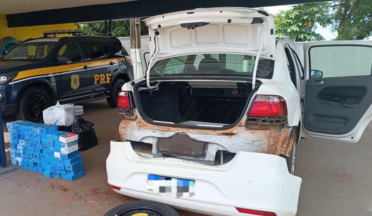 A PRF realizou uma fiscalização nesta segunda-feira (19), apreendendo dois veículos carregados com mercadorias estrangeiras em Nova Andradina (MS). Durante a abordagem na BR-267, os motoristas dos VW/ Voyage afirmaram que haviam retirado os carros na fronteira com o Paraguai e que deveriam entregá-los em Bataguassu. Nos automóveis e em compartimentos ocultos, os policiais encontraram 178 celulares, cinco frascos de medicamentos, cosméticos e outros produtos ilegais.