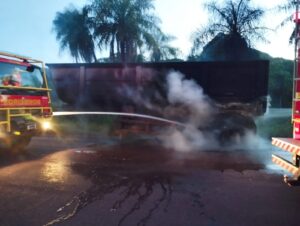 Incêndio atinge carreta na BR-262 em Corumbá