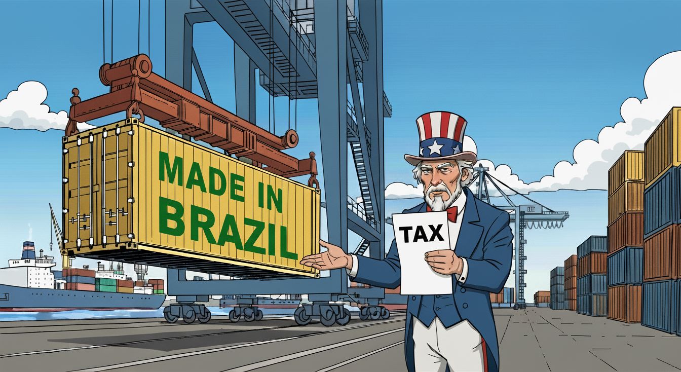 Urgente! Os Estados Unidos da América acabaram de aumentar para 7,2% os impostos de importação para smartphones, bens de capital e equipamentos de informática estrangeiros que tentarem entrar no país. O nosso presidente da República criticou em rede nacional o “neocolonialismo estadunidense”; o PT está apelando à “soberania nacional”; os jornalistas estão criticando o protecionismo de Donald Trump; Aloisio Mercadante declarou que isso equivale a um embargo!